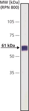 In immunoblotting, the product recognizes an epitope located on the α-subunit of calcineurin (61 kDa, also called calcineurin A) and does not cross-react with the β-subunit.