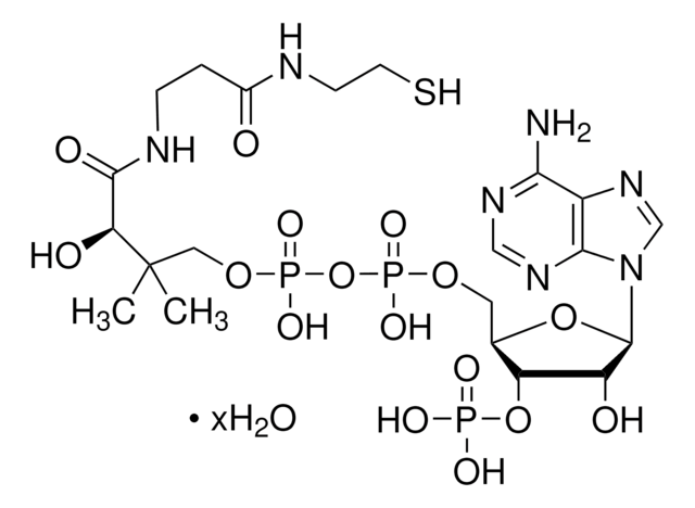 1S/C21H36N7O16P3S.H2O/c1-21(2,16(31)19(32)24-4-3-12(29)23-5-6-48)8-41-47(38,39)44-46(36,37)40-7-11-15(43-45(33,34)35)14(30)20(42-11)28-10-27-13-17(22)25-9-26-18(13)28;/h9-11,14-16,20,30-31,48H,3-8H2,1-2H3,(H,23,29)(H,24,32)(H,36,37)(H,38,39)(H2,22,25,26)(H2,33,34,35);1H2/t11-,14-,15-,16+,20-;/m1./s1