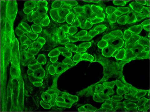 indirect ELISA: suitable, indirect immunofluorescence: 1:400 using frozen human or animal muscle tissue sections., microarray: suitable, western blot: suitable