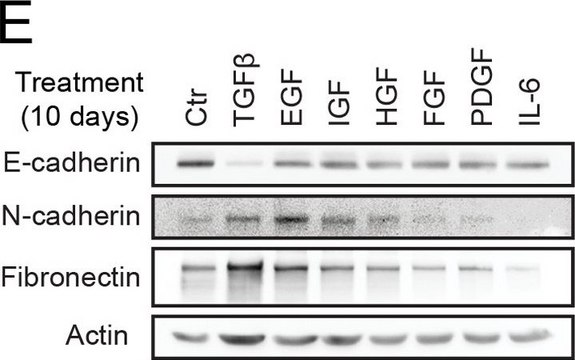 indirect ELISA: 1:10,000 using human fibronectin, indirect immunofluorescence: 1:400 using human foreskin cultured fibroblasts, microarray: suitable, western blot: 1:1,000 using human plasma fibronectin