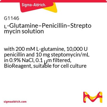 L-Glutamine–Penicillin–Streptomycin solution, with 200 mM L-glutamine, 10,000 U penicillin and 10 mg steptomycin/mL in 0.9% NaCl, 0.1 μm filtered, BioReagent, suitable for cell culture