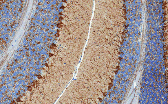 immunohistochemistry (formalin-fixed, paraffin-embedded sections): 1:500-1:20,000 (with antigen-retrieval step), western blot: 1:500-1:20,000 using mouse brain extract