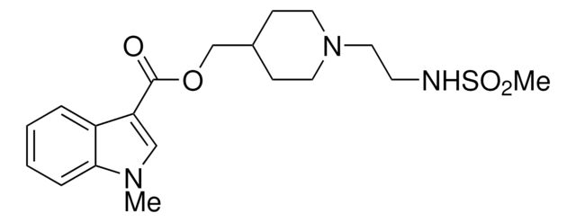 GR 113808已被用作5-羟色胺受体4(5-HT4R)阻断剂,以研究其对大鼠心室心肌细胞中钙(Ca2+)瞬变的影响。它也已被用作5-HT4R拮抗剂,以研究其对胚胎后斑马鱼从头肠神经发生的影响。
