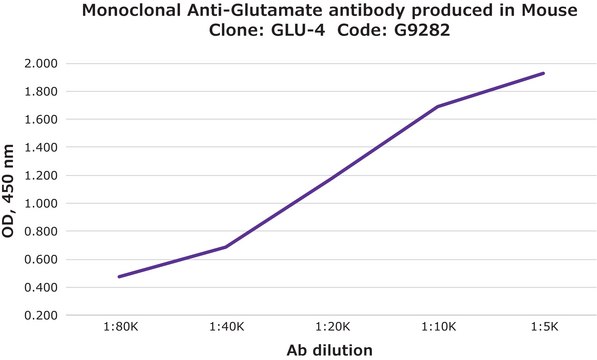 indirect ELISA: 1:10,000 using in situ prepared L-glutamate-glutaraldehyde-BSA conjugate for coating