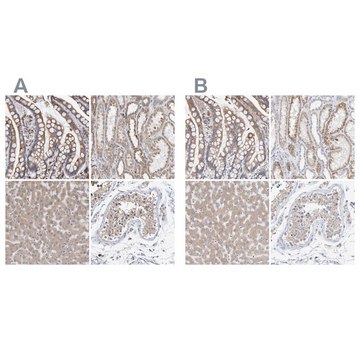 Anti-SGPL1 antibody produced in rabbit, a Prestige Antibody, is developed and validated by the Human Protein Atlas (HPA) project . Each antibody is tested by immunohistochemistry against hundreds of normal and disease tissues. These images can be viewed on the Human Protein Atlas (HPA) site by clicking on the Image Gallery link. The antibodies are also tested using immunofluorescence and western blotting. To view these protocols and other useful information about Prestige Antibodies and the HPA, visit sigma.com/prestige.