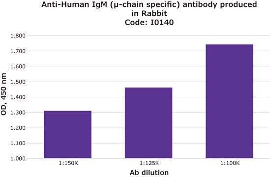 Anti-Human IgM (μ-chain specific) antibody produced in rabbit was used as secondary antibody in immunoblotting and indirect ELISA.