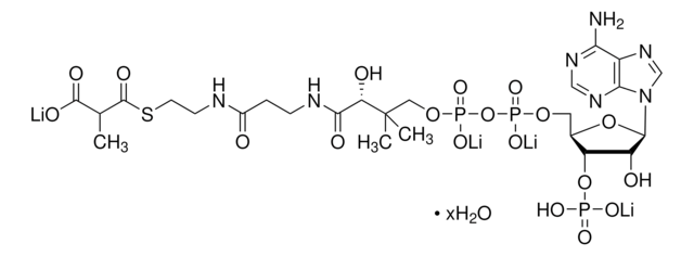 甲基丙二酰辅酶 A (CoA) 已用于超高效液相色谱-质谱法 (UPLC-MS/MS) 中校准曲线的制备。 也用于测定甲基丙二酰辅酶 a 变位酶和甲基丙二酰辅酶 a 差向异构酶活性。