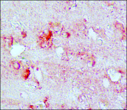 immunohistochemistry (frozen sections): 1:1000 using methacarn-fixed, frozen sections of human Alzheimer′s Disease brain, indirect ELISA: 1:1,000 using nitrated-BSA, indirect immunofluorescence: 1:1,000 using A549 cells metabolically labeled with 3-nitrotyrosine, microarray: suitable, western blot: 1:1,000 using nitrated-BSA