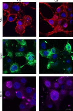 Monoclonal anti-neurofilament 160 antibody (diluted 1: 5000) can be used as internal loading controls in immunoblotting. It can also be used in whole-mount immunohistochemistry and western blot. Monoclonal anti-neurofilament 160 antibodies can be used for localization of neurofilaments of molecular weight 160,000 in cultured cells or tissues preparation.