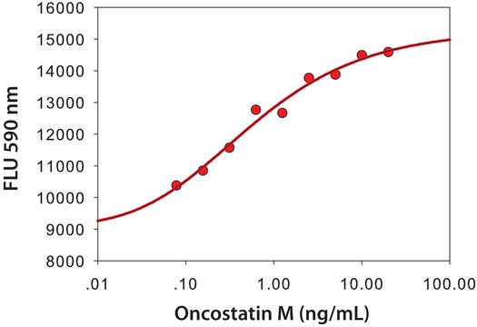 Oncostatin M (OSM) is a growth and differentiation factor that participates in the regulation of neurogenesis, osteogenesis and hematopoiesis. It can exert both stimulatory and inhibitory effects on cell proliferation. OSM stimulates the proliferation of fibroblasts, smooth muscle cells and Kaposi′s sarcoma cells, but, inhibits the growth of some normal and tumor cell lines. It also promotes cytokine release [e.g. interleukin-6 (IL-6), granulocyte-macrophage colony-stimulating factor (GM-CSF) and granulocyte-colony-stimulating factor (G-CSF)] from endothelial cells.