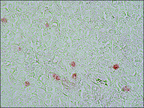 在免疫印迹中与 Ki-67 核抗原(345 和 395 kDa,以及几种较低分子量蛋白)反应。该产品显示了与其他抗 Ki-67/MIB-1 试剂相似的免疫组织化学染色模式。它在冷冻人体组织和福尔马林固定、石蜡包埋组织中标记增殖细胞。成功标记常规福尔马林固定、石蜡包埋的人体组织需要微波加热恢复步骤。