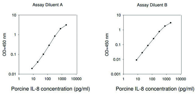 The Porcine IL-8 (chemokine, interferon γ-inducible T cell α chemoattractant) ELISA (Enzyme-Linked Immunosorbent Assay) kit is an in vitro enzyme-linked immunosorbent assay for the quantitative measurement of porcine IL-8 in serum, plasma, cell culture supernatants and urine.