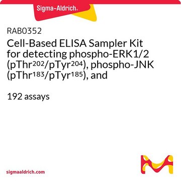 The Cell-Based ERK1/2 (activated) ELISA Sampler Kit is a very rapid, convenient and sensitive assay kit that can monitor the activation or function of important biological pathways in cells. It can be used for measuring the relative amount of ERK1/2 (pThr202 / pTyr204), JNK (pThr183 / pTyr185) and p38 MAPK (pThr180m / pTyr182) phosphorylation and screening the effects of various treatments, inhibitors (such as siRNA or chemicals), or activators in cultured human, mouse and rat cell lines.