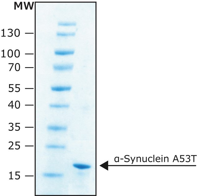 α-突触核蛋白基因中的点突变A53T(Ala53-Thr)与家族性帕金森氏′病有关。 表达A53T人α-突触核蛋白但不表达野生型或A30P变体的小鼠会发展为成年发作的神经退行性疾病,并伴有进行性运动 功能障碍,导致死亡。