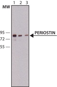 western blot: 2-4 μg/mL using whole extracts of HEK-293T cells over expressing human Periostin