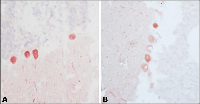 Anti-Calbindin-D-28K antibody, Mouse monoclonal (mouse IgG1 isotype) is derived from the hybridoma CB-955 produced by the fusion of mouse myeloma cells and splenocytes from BALB/c mice immunized with a purified bovine kidney calbindin-D-28K.