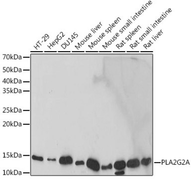 A synthetic peptide corresponding to a sequence within amino acids 65-144 of human PLA2G2A (P14555).