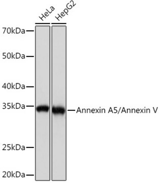 The protein encoded by this gene belongs to the annexin family of calcium-dependent phospholipid binding proteins some of which have been implicated in membrane-related events along exocytotic and endocytotic pathways. Annexin 5 is a phospholipase A2 and protein kinase C inhibitory protein with calcium channel activity and a potential role in cellular signal transduction, inflammation, growth and differentiation. Annexin 5 has also been described as placental anticoagulant protein I, vascular anticoagulant-alpha, endonexin II, lipocortin V, placental protein 4 and anchorin CII. The gene spans 29 kb containing 13 exons, and encodes a single transcript of approximately 1.6 kb and a protein product with a molecular weight of about 35 kDa. [provided by RefSeq, Jul 2008]