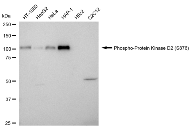 A synthesized peptide corresponding to a sequence within amino acids 869-878 of human Phospho-Protein Kinase D2 [NP_001073349.1].