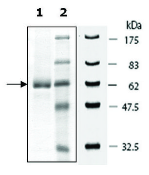 Mouse PDE7A (GenBank Accession No. NM_001122759) amino acids 147-482 (end) with N-terminal GST-tag, MW=65 kDa, expressed in a Baculovirus-infected Sf9 cell expression system.