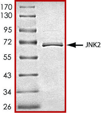 JNK2 is a member of the JNK family that acts as an integration point for multiple biochemical signals, and is involved in a wide variety of cellular processes such as proliferation, differentiation, transcription regulation and development. JNK2 targets specific transcription factors, and mediates immediate-early gene expression in response to various cell stimuli. Both UV radiation and the proinflammatory cytokine TNFα can induce JNK2. JNK2 play a main role in the regulation of regional specific apoptosis during early brain development and providing protection against autoimmune diabetes.