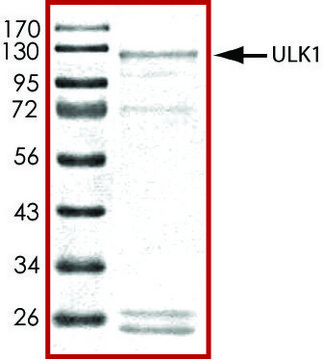 Unc-51 like autophagy activating kinase 1 (ULK1) is a serine/threonine protein kinase which forms a component of the ULK1 protein kinase complex. This protein complex also contains the adaptor proteins ATG (autophagy-related) 13, RB1CC1/FIP200 (RB1-inducible coiled-coil 1), and ATG101. The gene encoding this protein is localized on human chromosome 12q24.33.
