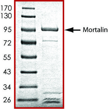 Mortalin is a mitochondrial chaperone and a member of the heat shock protein 70 family that is constitutively expressed in cells. Mortalin plays a central role in mitochondrial biogenesis through its capacity to direct the import of nuclear-encoded proteins into the mitochondria. Mortalin plays a role in the control of cell proliferation and elevated levels of mortalin have correlated with malignant transformation and poor cancer prognosis. Mortalin can support cancer cell resistance to complement-dependent cytotoxicity. Mortalin expression was decreased in the mitochondrial fraction of neurons from the substantia nigra of Parkinson disease patients.
