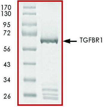 TGFβR1 is a transmembrane serine/threonine protein kinase and a member of the TGFβ receptor subfamily. TGFβ regulates cell cycle progression by a unique signaling mechanism that involves its binding to TGFβR2 and activation of TGFβR1. TGFβR1 may be inactivated in many of the cases of human tumor cells refractory to TGFβ-mediated cell cycle arrest. Heterozygous mutations in TGFβR1 and TGFβR2 have been reported in Loeys-Dietz aortic aneurysm syndrome (LDS) and also dominant TGFβR2 mutations have been identified in Marfan syndrome type 2 (MFS2) and familial thoracic aortic aneurysms and dissections (TAAD). Mutations of TGFβR1 and TGFβR2 are associated with atherosclerosis and several human cancers.