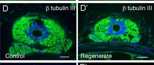 α/β-微管蛋白主要作为可溶性(约100-110kDa) α-微管蛋白异二聚体和 β-微管蛋白同型体或作为聚合体存在于组装的微管中。β-微管蛋白III(也称为 β-4链)存在于脑和背根神经节中,且似乎定位在中枢和外周神经系统的神经元中。β-微管蛋白III也存在于睾丸支持细胞、精子尾部、某些肺细胞和一些明显的乳腺基质细胞中。