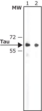此抗体显示了广泛的物种反应性。抗-τ不会与MAP1、MAP2或微管蛋白发生反应。抗体与τ发生反应,即两种主要类别的热稳定的微管相关蛋白(MAP)之一。