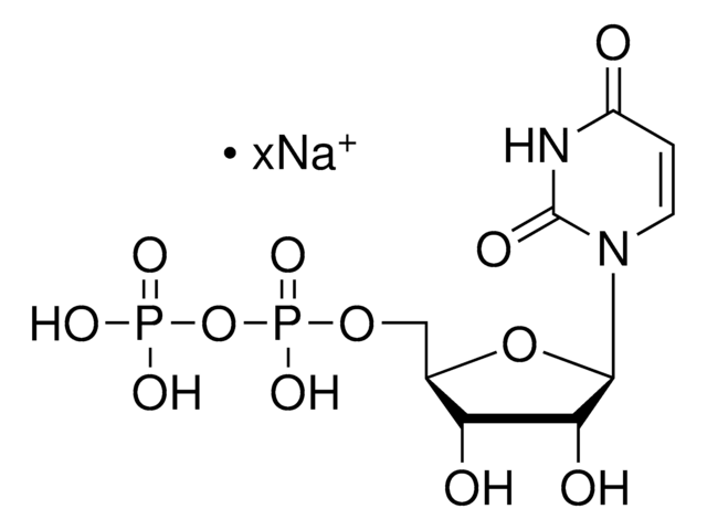 UDP已用作嘌呤能激动剂,研究其对耳蜗外沟细胞(OSC)和前庭移行细胞(VTC)吸收阳离子通量的影响 。UDP 还用于兔视网膜中核苷二磷酸酶(NDPase)活性测定 。