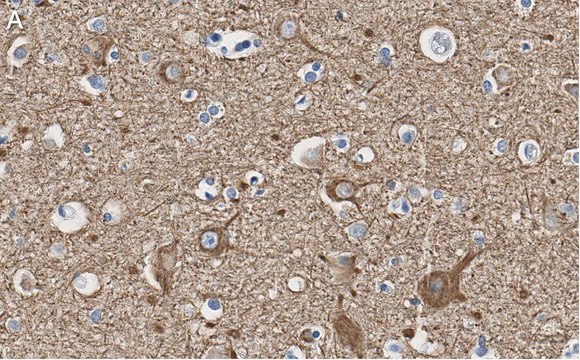 Immunohistochemistry (Paraffin) Analysis: A 1:100 dilution from a representative lot detected Neurofilament L in human cerebral cortex tissue sections.