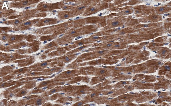 Immunohistochemistry (Paraffin) Analysis: A 1:1,000 dilution from a representative lot detected AGK in human heart tissue sections.