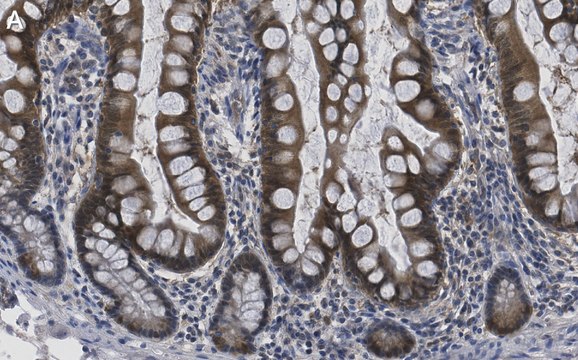 Immunohistochemistry (Paraffin) Analysis: A 1:100 dilution from a representative lot detected Caspase-7 in human small intestine tissue sections.