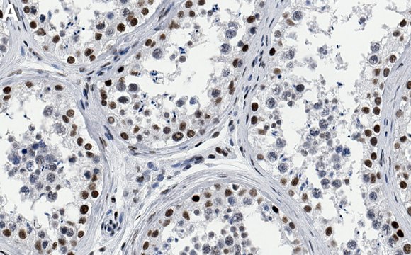 Immunohistochemistry (Paraffin) Analysis: A 1:100 dilution from a representative lot detected CREB-binding protein (CBP) in human testis tissue sections.