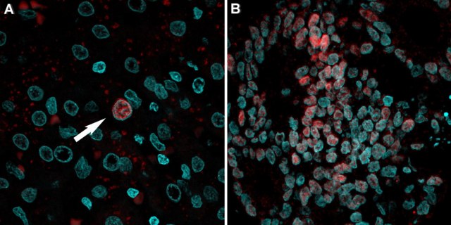 Immunocytochemistry Analysis: A 1:100 dilution from a representative lot detected FOXA2 in A549 cells.