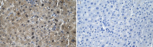 Immunohistochemistry (Paraffin) Analysis: A 1:100 dilution from a representative lot detected Nur77/NR4A1 in Human liver tissue sections.