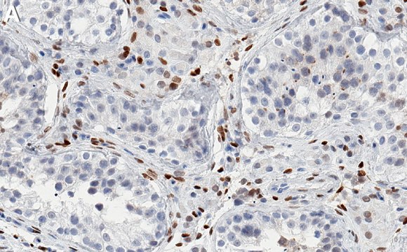 Immunohistochemistry (Paraffin) Analysis: A 1:100 dilution from a representative lot detected PRRX1 in human testis tissue sections.