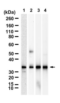 calculated mol wt 33.02 kDa, observed mol wt ~33 kDa