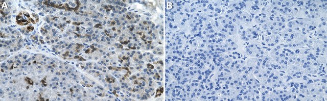 Immunohistochemistry (Paraffin) Analysis: A 1:100 dilution from a representative lot detected erbB4/HER4 in Human pancreas tissue sections.
