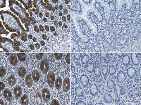 Western Blotting Analysis: A 1:10,000 dilution from a representative lot detected Mucin-2 in lysate from Human small intestine tissue.