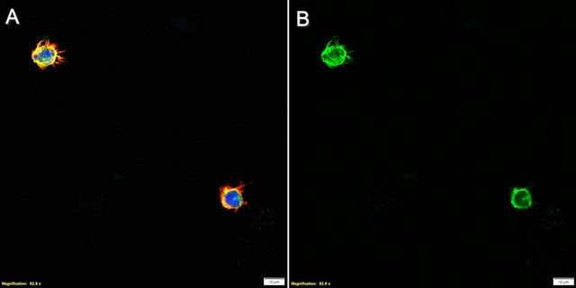 Immunocytochemistry Analysis: A 1:100 dilution from a representative lot detected CD64 in U937 cells.