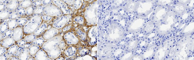 Immunohistochemistry (Paraffin) Analysis: A 1:100 dilution from a representative lot detected Collagen -4 in human kidney tissue sections.