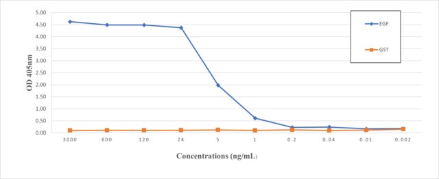 Enzyme Immunoassay: A representative lot of this antibody detected EGF protein in ELISA application.