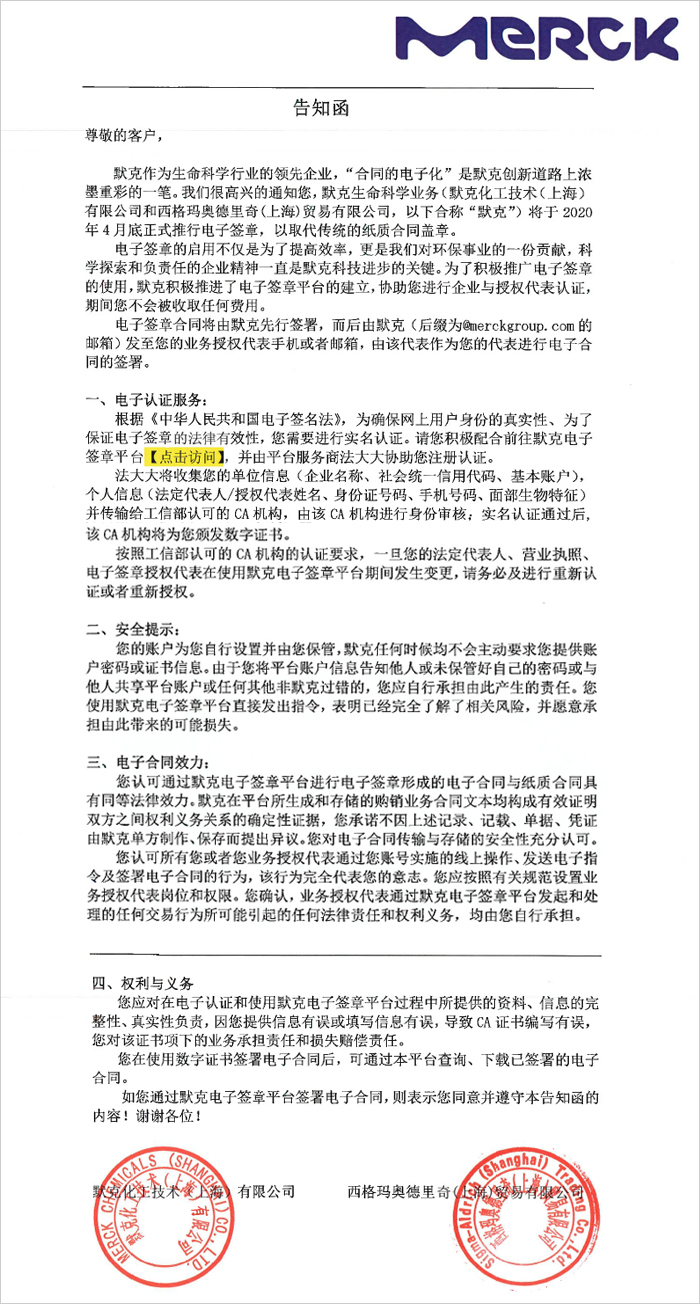 订购/客服Email:ordercn@merckgroup.com