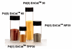 Pd(II) EnCat™ covers a versatile range of immobilized palladium acetate catalysts with or without activating ligands contained in a robust, porous polyurea matrix which allow easier, faster and cleaner reaction processes to be developed. The recyclable catalysts have demonstrated superb activity in cross-couplings, Heck couplings, and carbonylations.