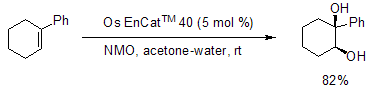 Osmium tetroxide (OsO4)is known to be one of the most reliable and effective catalysts for oxidative cleavage and dihydroxylation of olefins. However, it is very toxic, volatile and expensive, thus limits its usefulness at large-scale. Os EnCat™ 40 effectively immobilizes and stabilizes osmium tetroxide to produce a safer and easier-to-use catalyst for application in oxidation chemistry.