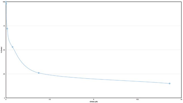 LPL (0.8 U) was pre-incubated with Orlistat in DMSO at different concentrations (0.27 to 16.8 μM) for 10 minutes in 4 mM sodium deoxycholate, 0.1 mM linoleic acid, 10 mM Tris buffer pH 8.5 at 25 ℃. Each dilution (10 μl) was assayed for LPL activity as described above.